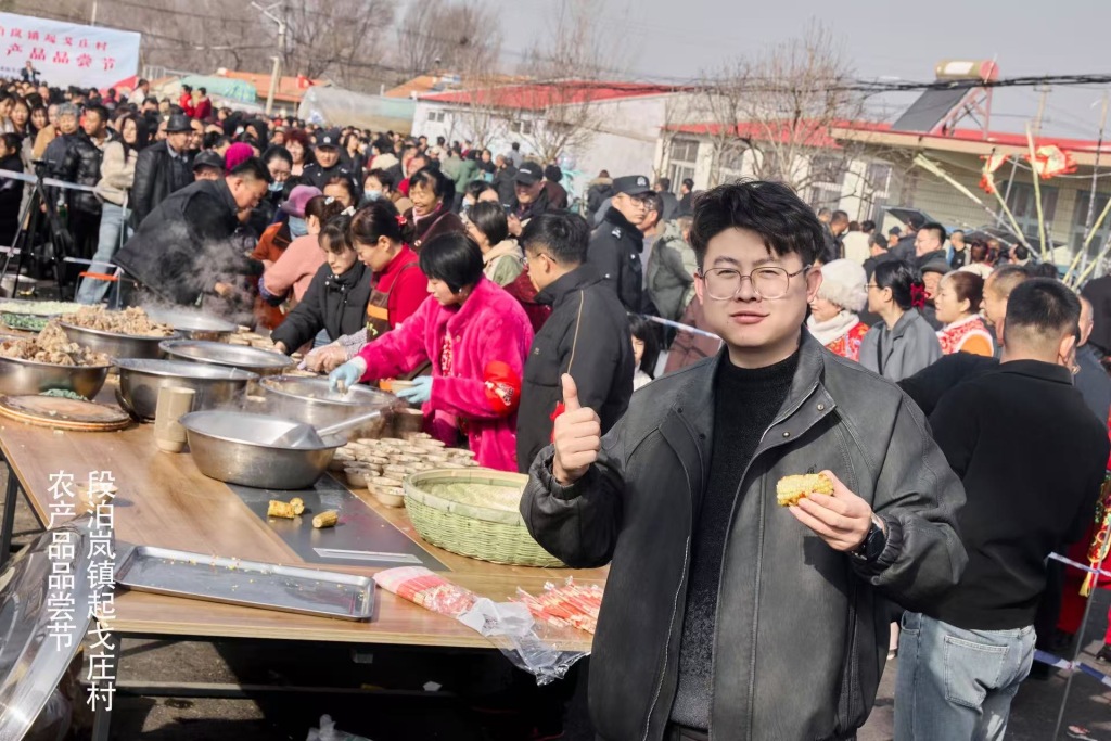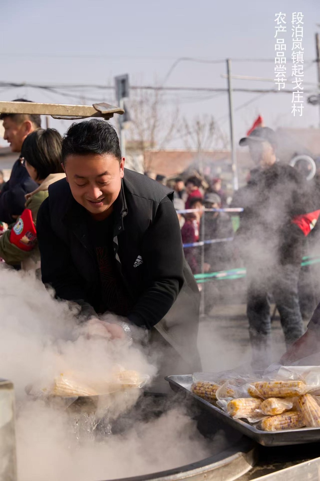 这已经不是宋吉阳第一次为乡亲们站台。此前,他就因在直播间里推销本地农产品被网友亲切地称为“玉米书记”。而在此次“闹年”年会期间,他的直播间热度更是创下新高。宋吉阳通过@段泊岚玉米书记抖音号进行的直播,累计观看人数突破10万人次。依托年会的浓郁烟火氛围,起戈庄村及周边村庄生产的绿色无公害农产品集中亮相,迎来新年首个销售高峰。