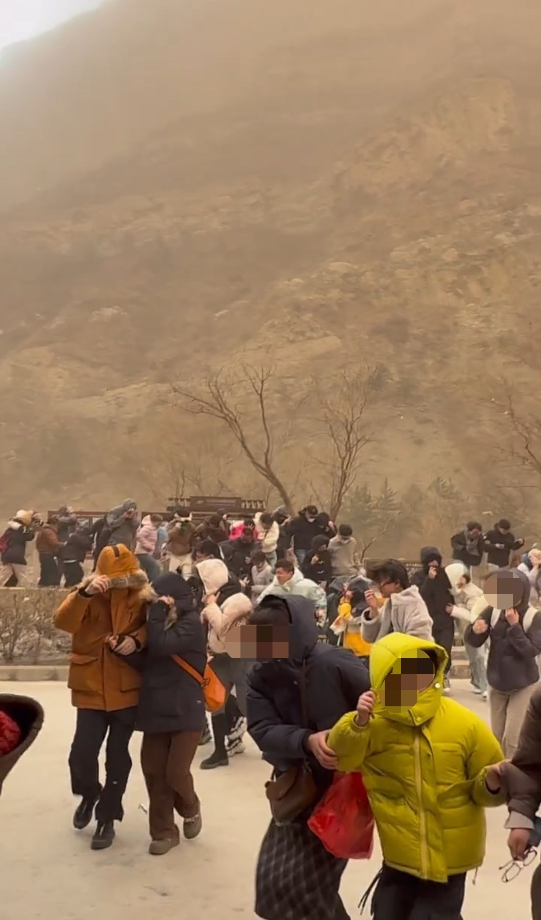 山西大同多景区受极端大风天气影响暂停开放!有游客称恒山景区黄沙漫天,被吹得走不动道