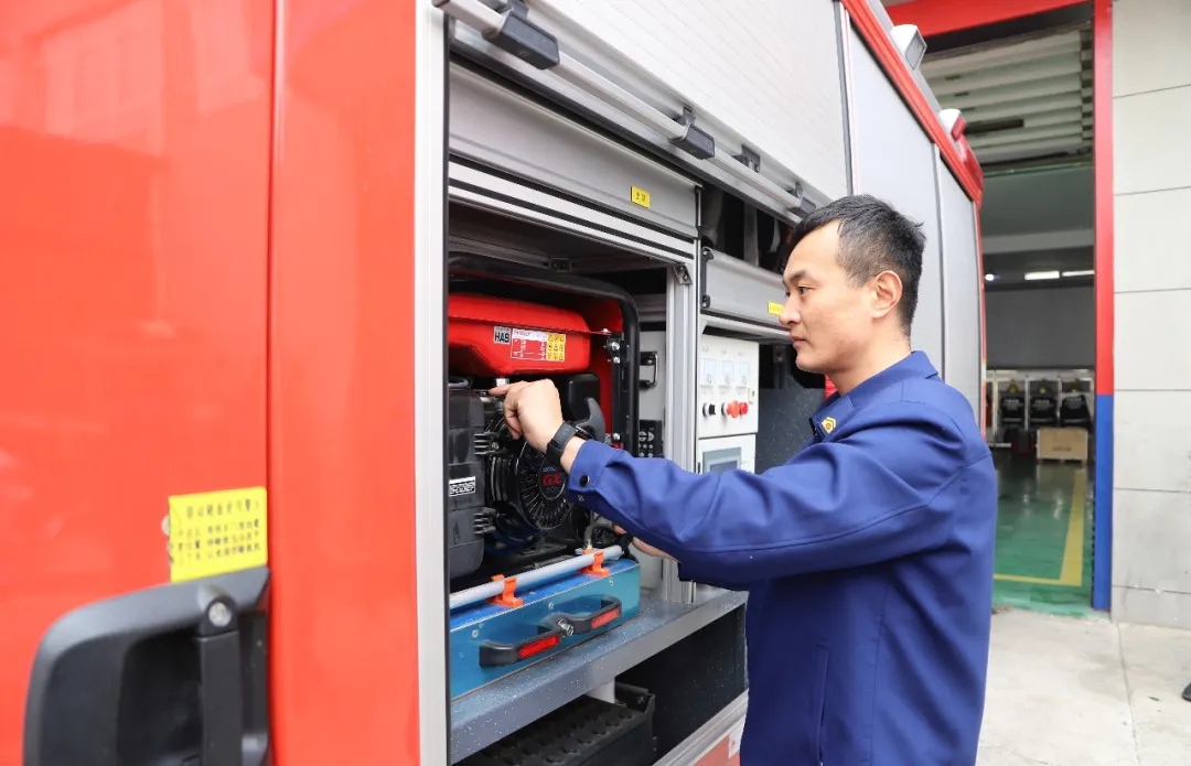 为了做好执勤备战,消防站提前做足了准备:合理调配人员,兼顾队员休息与战斗力稳定;对消防车辆的油水电气、各类救援器材进行全面细致检查,确保装备时刻处于完好可用状态,真正做到“拉得出、用得上、打得赢”。每天清晨六点,吕成跃和队友们便起床整理内务、打扫卫生,饭后完成车辆交接班,随后便奔赴辖区开展巡查,从清晨到深夜,巡查的脚步从未停歇。