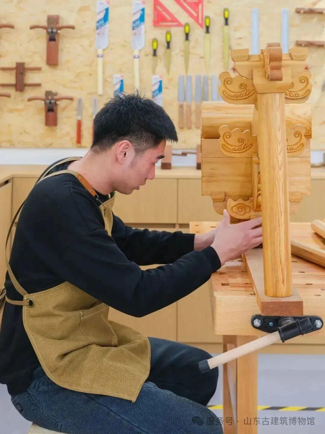 春节期间,山东古建筑博物馆特别推出古建技艺体验工坊,开设木工工坊、彩绘工坊与木工体验区。专业匠人现场展示传统古建技艺,游客可亲手互动实操,在趣味体验中感受古建魅力。