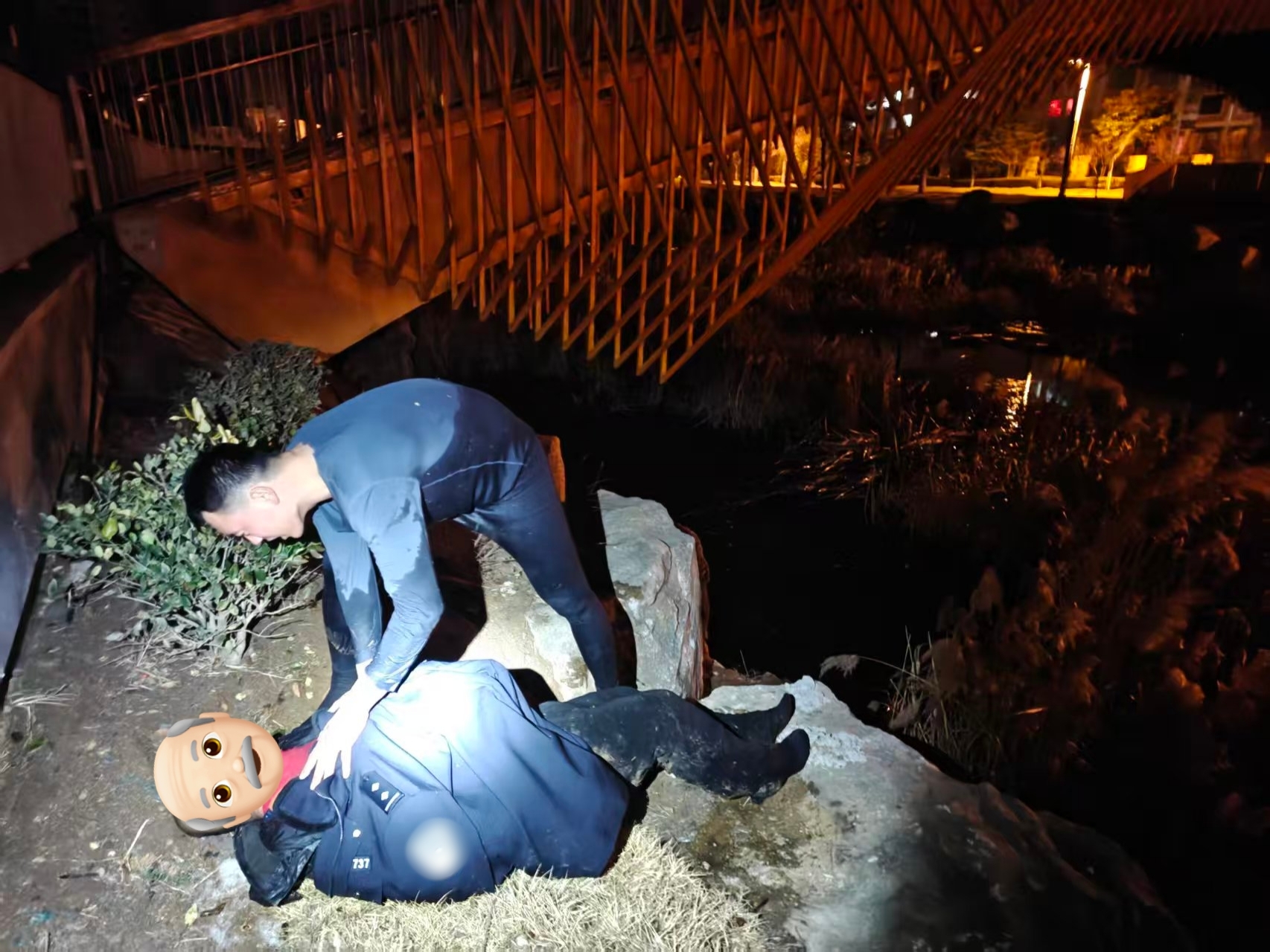 后经了解,落水者为一名老人,当晚不慎失足滑入河中。由于老人原本患有一些基础病症,加之本次落水,目前仍在重症病房接受救治。