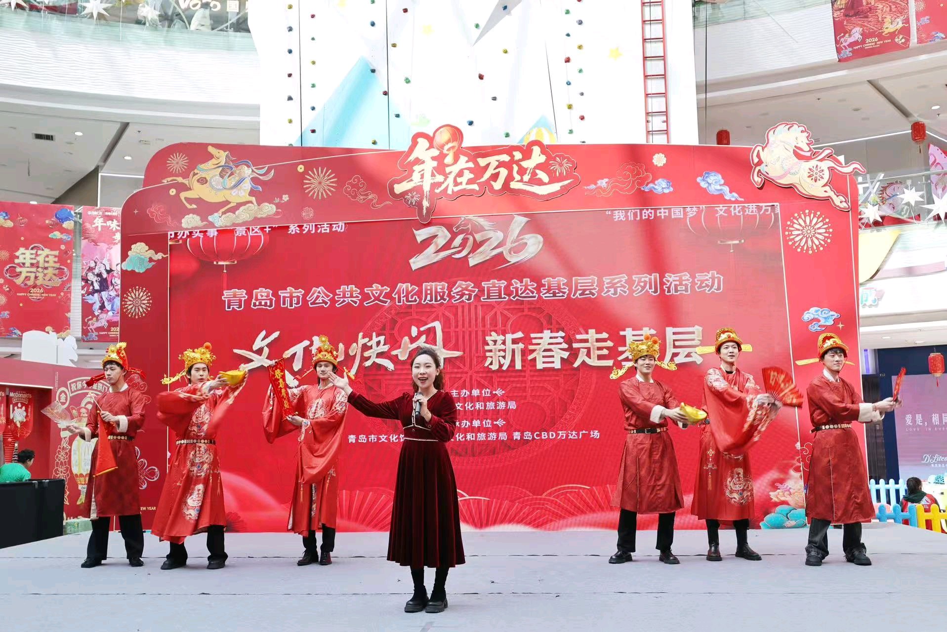 2 月 21 日,“岁启新封 春润岛城”青岛市公共文化服务直达基层系列新春活动走进CBD 万达广场中心舞台。