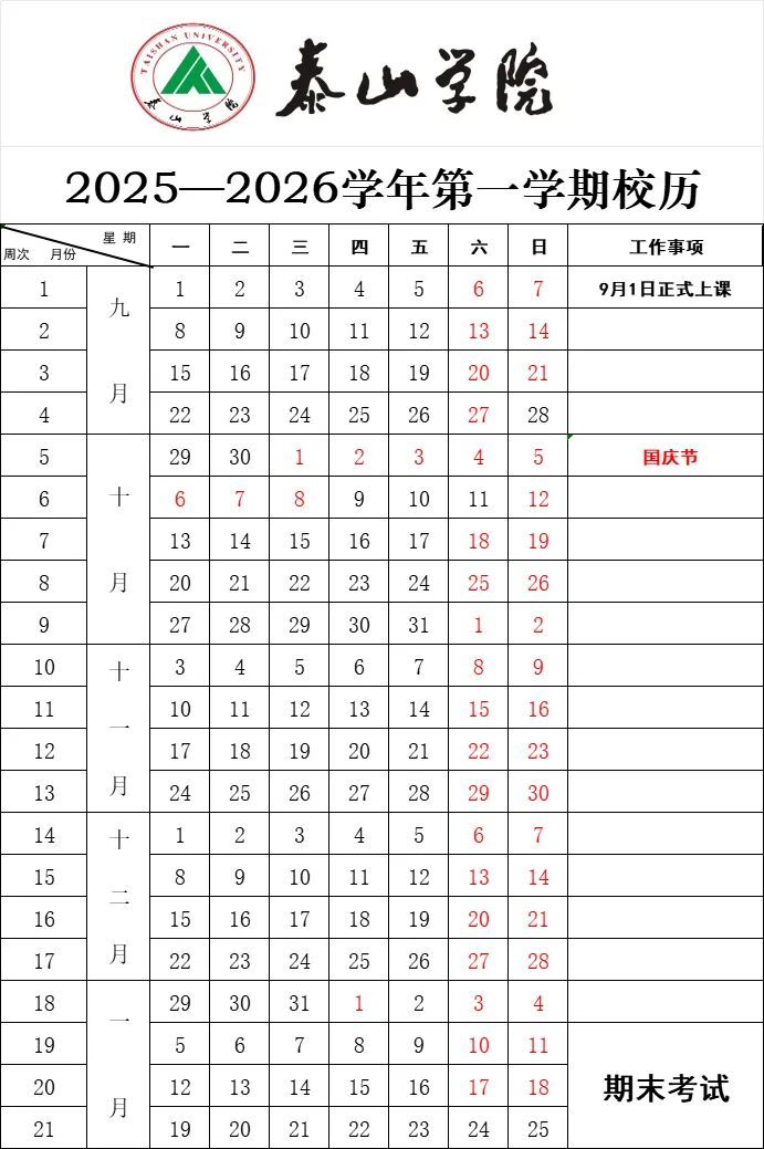 图源:泰山学院(如有调整,以校(院)最新通知为准)