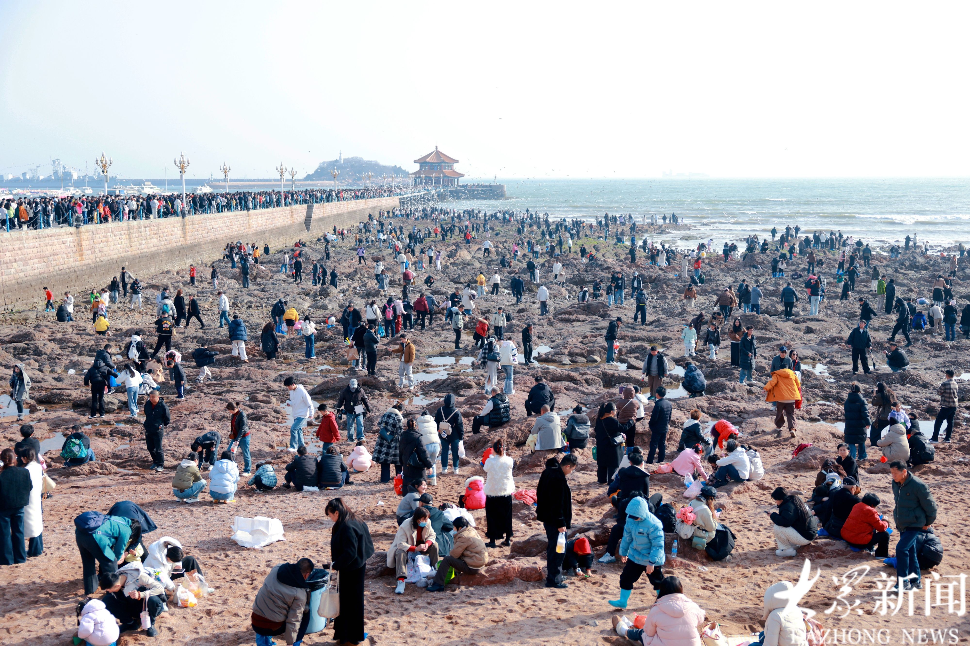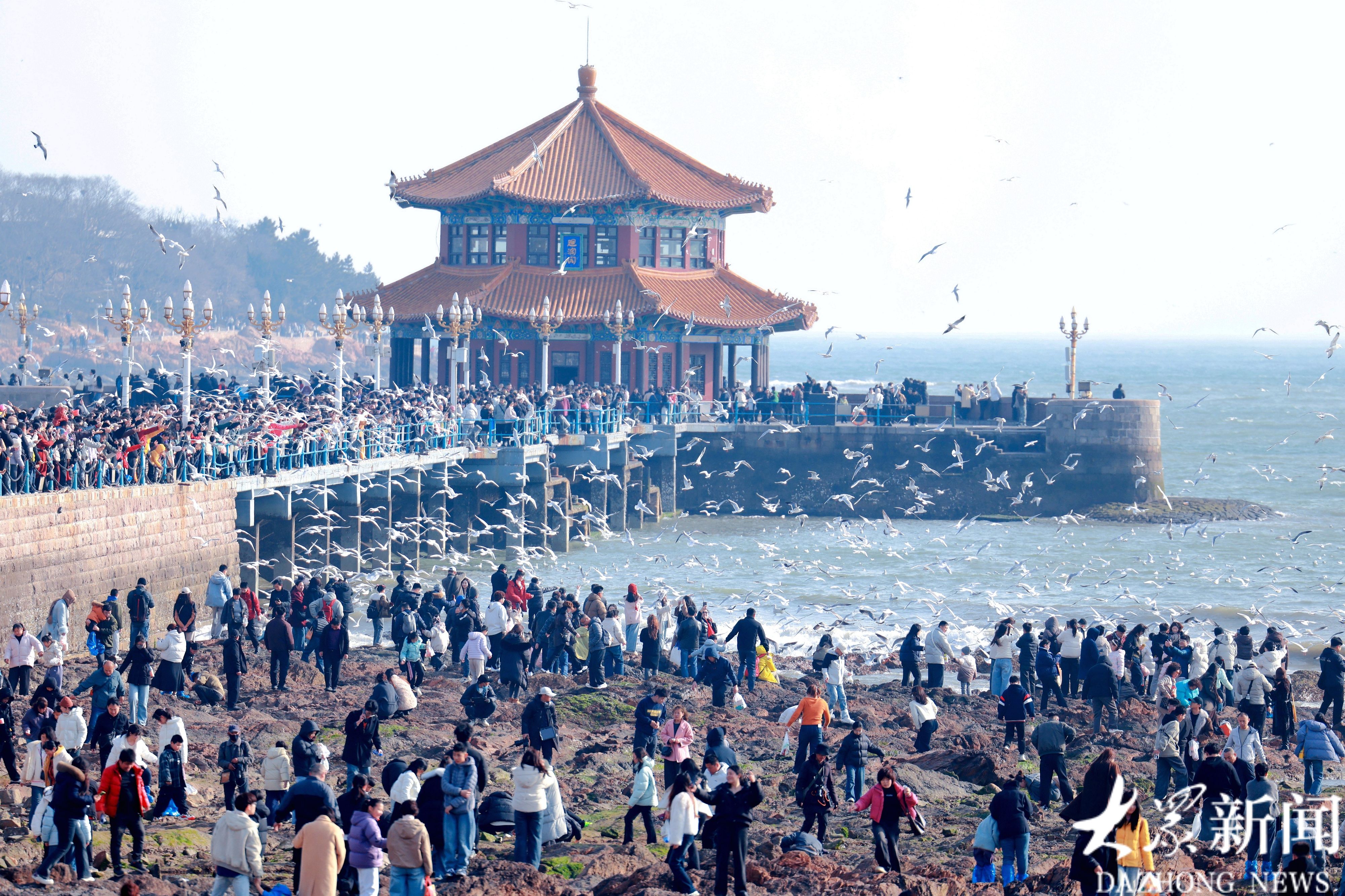 海鸥与游人挤爆岸边,这个假期栈桥也太火了!