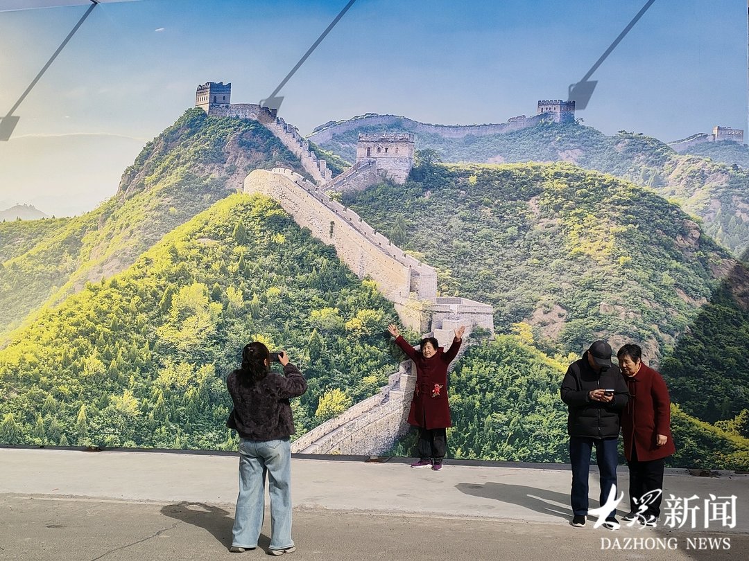 穿过热闹的演出人群,一条绵延数百米的“星光长廊”格外引人注目——这是淄博市首个村级道路光伏项目带来的独特景致。光伏板下,540盏红灯笼与218条灯带交相辉映,将初春的村庄装点得喜庆而温暖。长廊尽头,以万里长城为主题的彩绘墙前,游客们争相拍照打卡。“年前就听说淄东张村有长城墙绘,一直想来打卡,今天终于如愿了。”从临淄城区专程赶来的市民石传海和老伴在墙绘前摆好姿势,让路人帮忙按下快门。