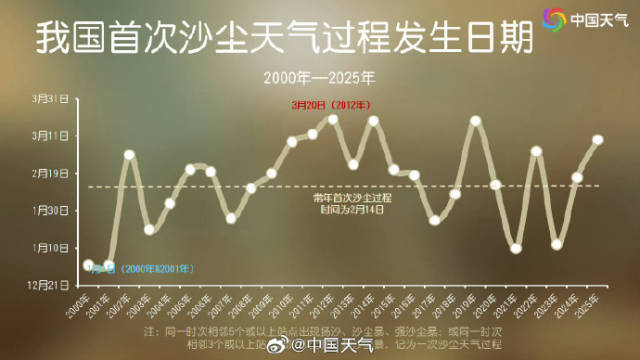 从中国天气网的统计数据来看,我国一年12个月份都曾有沙尘出没,其中春季(3至5月)最高发,秋冬季沙尘天气相对少见,但也并非完全没有。
