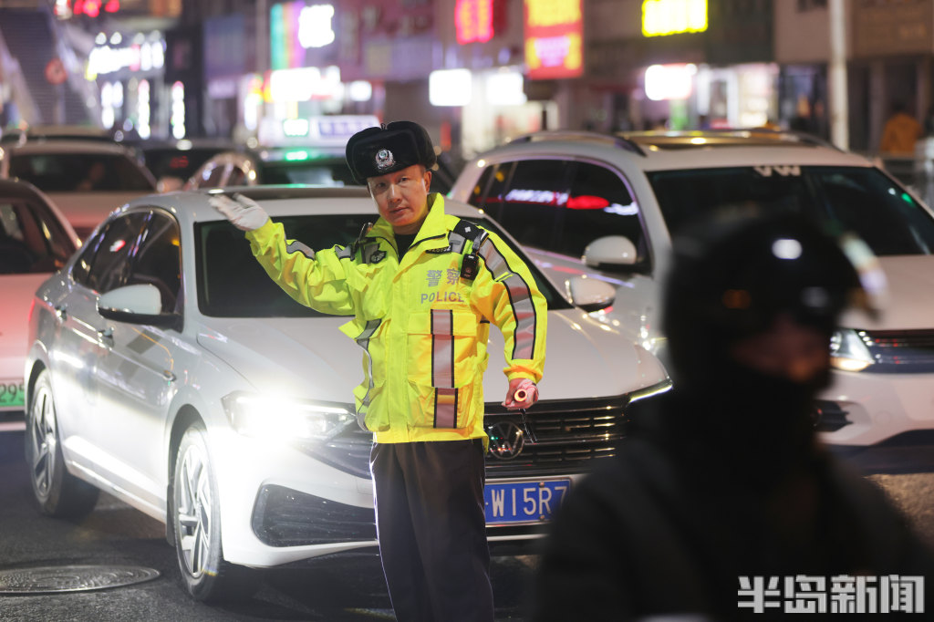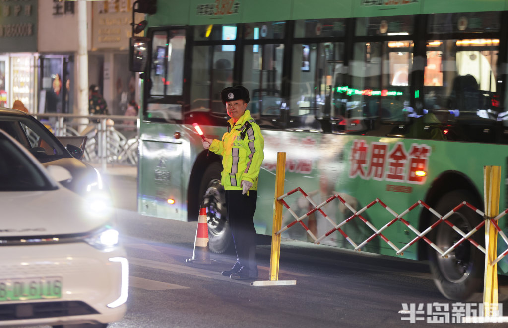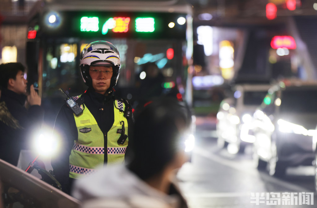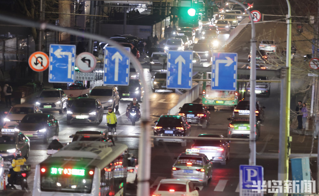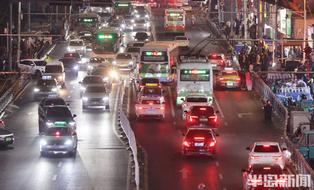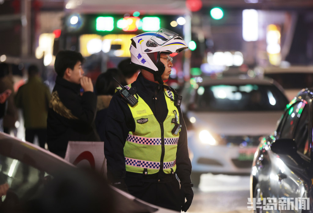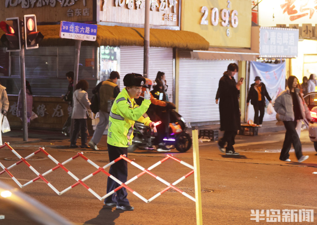 经过市北执勤民警不间断疏导管控,台东商圈未出现节假日期间常见的拥堵现象,整体车流平稳、通行顺畅,为市民游客营造了安全有序的夜间出行环境。