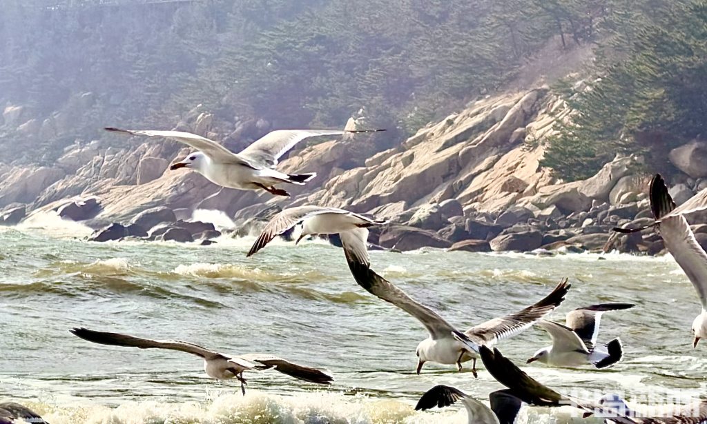 海鸥翩跹转场太清湾,崂山新春打卡添盛景