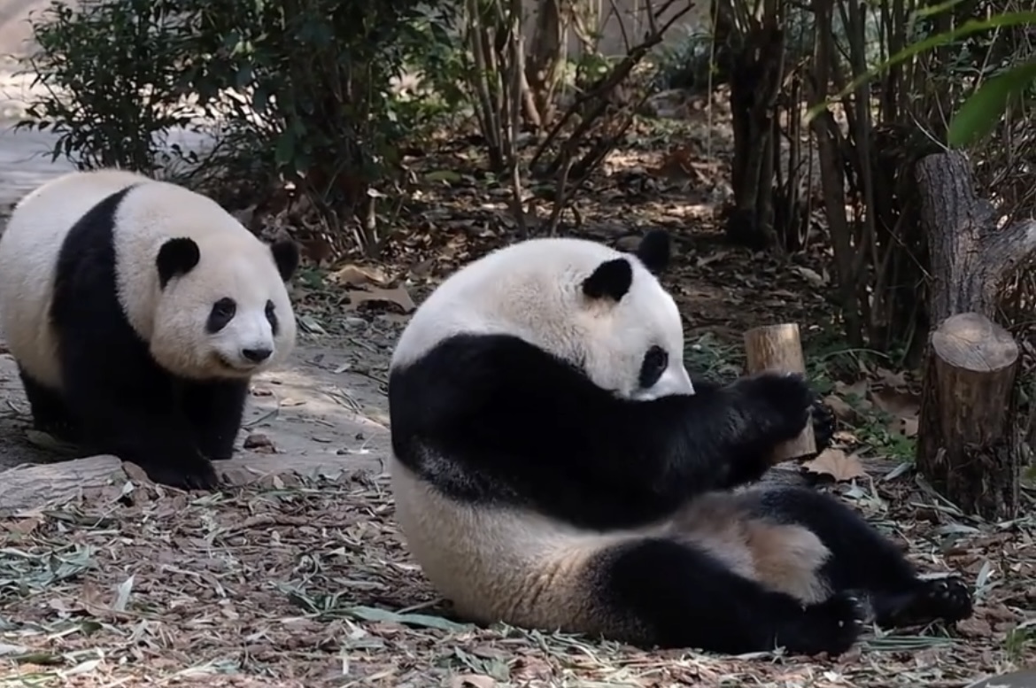 两只大熊猫被短暂放出
