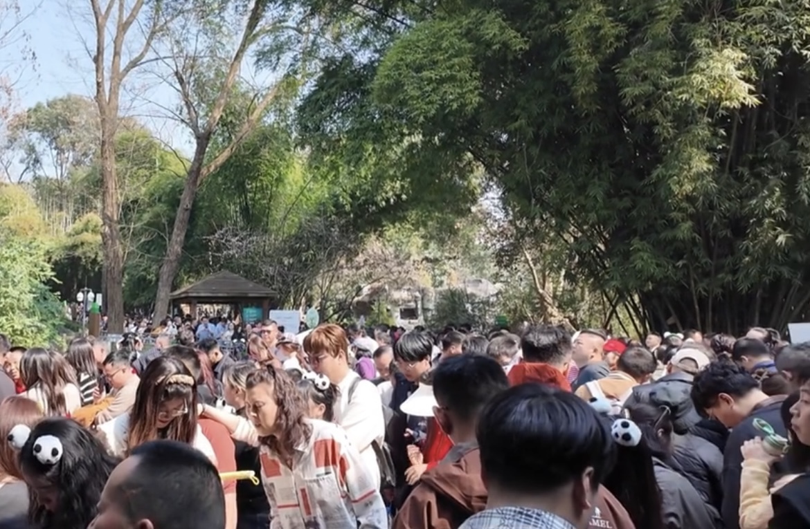 另有一位游客向极目新闻记者称,她从外地到成都,就是想带孩子看一看网红大熊猫花花,没想到排了快2小时的队,最后还是没能和花花见上一面。她表示,当时排在自己身后的队伍还有一百多米长,听说是因为有小孩往场馆里扔螺帽,导致大熊猫被收园,还有人报了警。