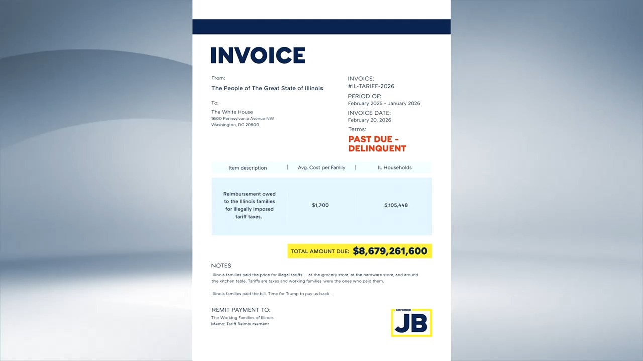 美伊利诺伊州长致函白宫:请退87亿美元税款央视新闻 2026-02-22 22:39:48美国伊利诺伊州州长、民主党人普里茨克21日致函美国总统特朗普,要求为该州每个家庭退还1700美元关税,退税总额约87亿美元,约合人民币601亿元。普里茨克在社交媒体发布了相关的账单,并配文“请付款”。责任编辑:张艺