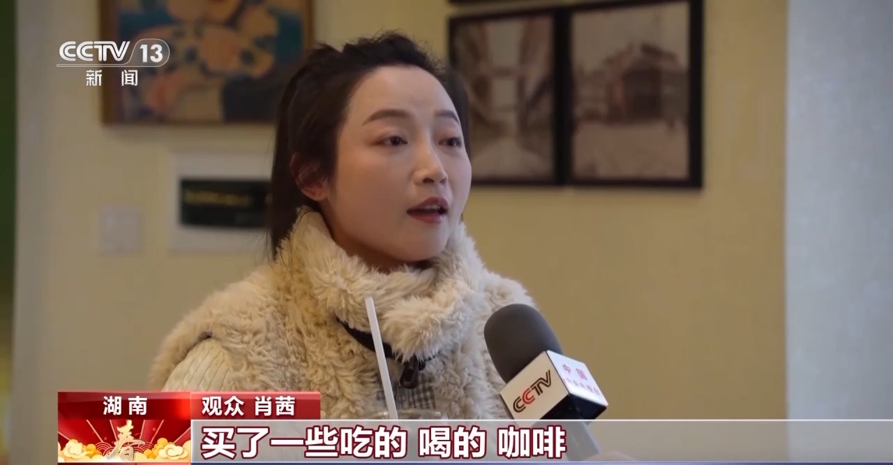 观众 肖茜:今天带着我的小孩还有家人一起过来看电影。本来就是想简简单单看个电影,然后就回家,但是我们在取票的时候,电影院工作人员跟我们介绍,凭借电影票买东西可以打折,就到旁边去逛了一下,买了一些吃的、喝的,非常划算。