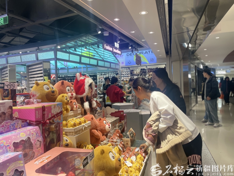 2月21日,在乌鲁木齐CCMALL时代广场一家潮玩店,市民在选购潮流物品。石榴云/新疆日报记者 索蓉芝摄