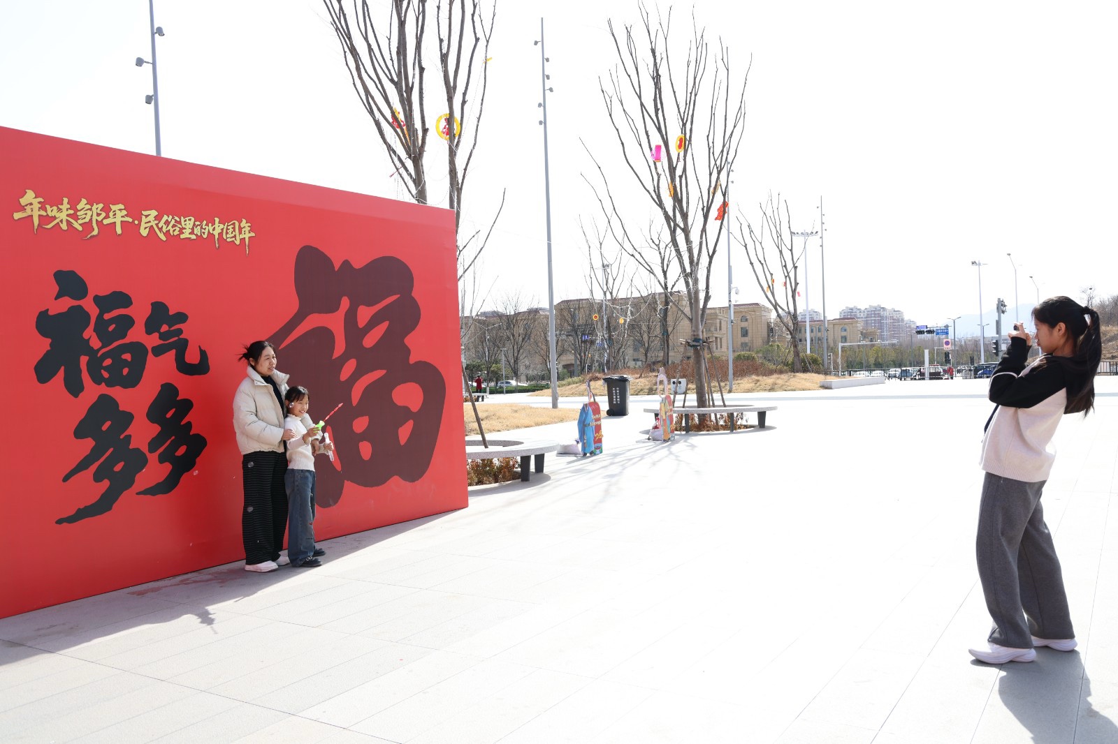 为了营造浓厚的节日氛围,演出的现场还设置了“马上有财”“福气多多”以及历史名人元素的打卡墙,不少市民纷纷驻足拍照留念。“奥体公园是邹平的地标,春节期间在这里不但能看到民俗演出,还能拍照打卡,真是一举两得啊!”市民孙晓飞高兴地说。