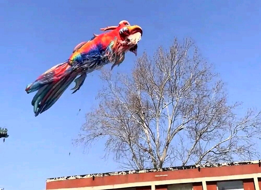 2月20日在济南上新街被大风意外吹走的巨型鳌鱼终于找到啦!