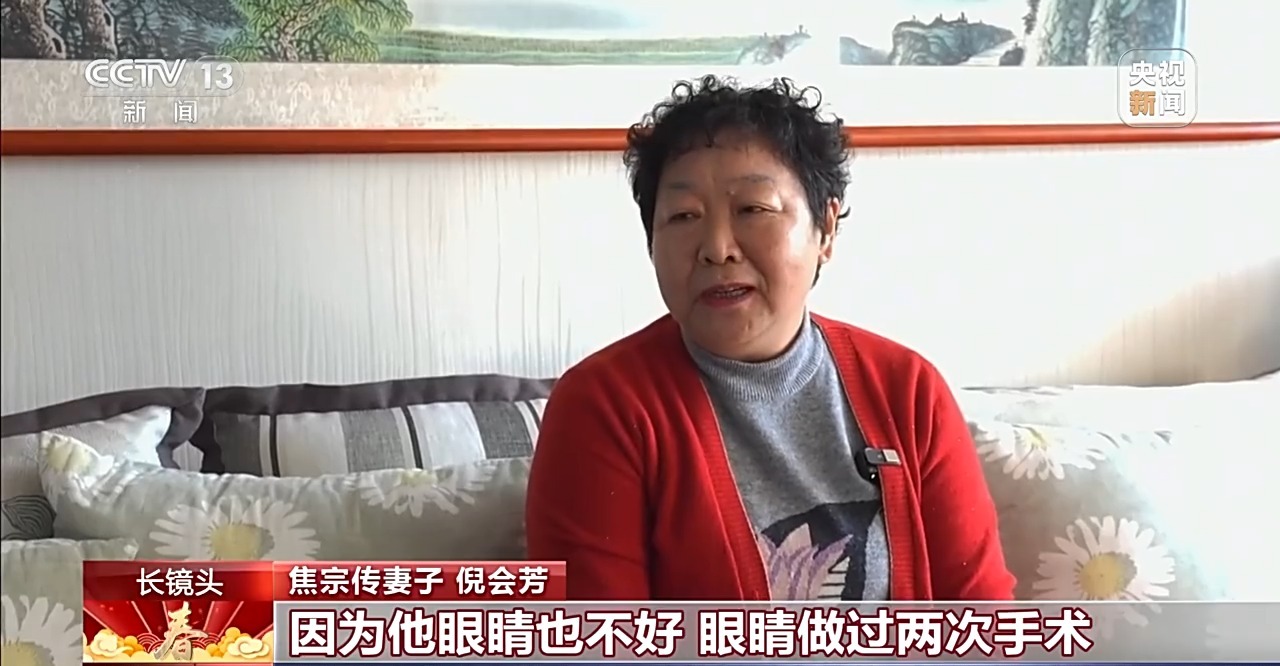 焦宗传妻子 倪会芳:他这个人,干起活来不知道休息,非常非常投入。他眼睛不太好,做过两次手术,我也不太愿意让他干了,但是他坚持。他既然这样坚持,那么我也得支持他。