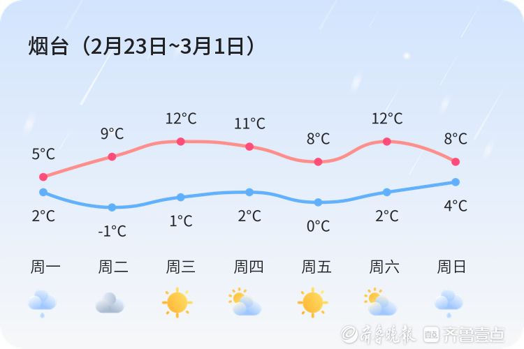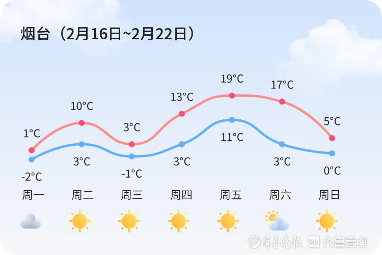 上周(2月16日~2月22日)我市晴天比较多。全市周平均最高温9℃,平均最低温2℃,平均气温6℃,周最高气温19℃,出现在周五,周最低温-2℃,出现在周一。具体气温变化情况如下图。本周总体以晴、多云为主基调,可能还会有雨、阴等天气。具体天气情况请关注每日天气情况预告。本周气温变化情况:最低气温-1~4℃,最高气温5~12℃。需要关注及时最新预报。具体气温变化情况如下图。