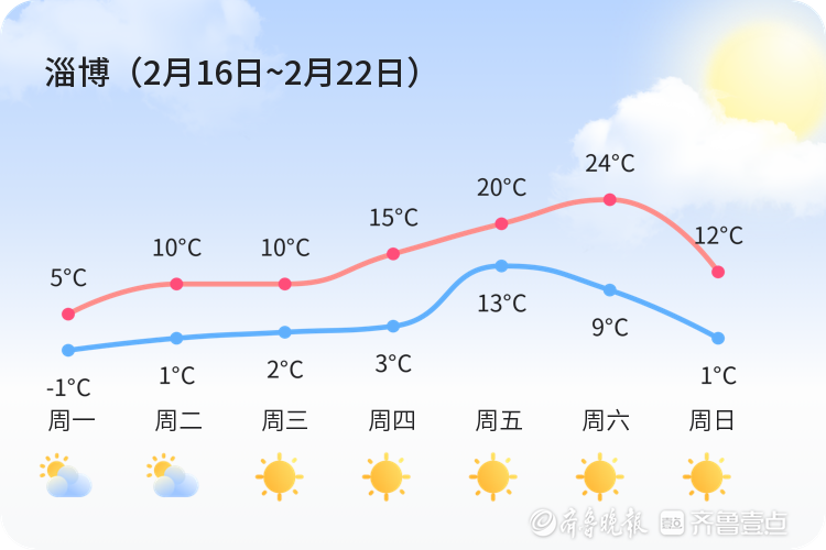 全市周平均最高温13℃,平均最低温2℃,平均气温7℃,周最高气温17℃,出现在周三、周六,周最低温-1℃,出现在周五。
