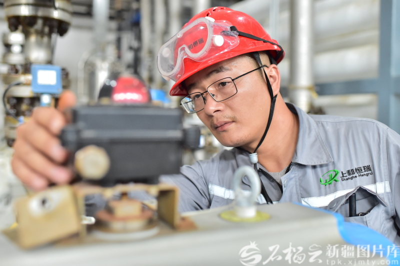 2月17日,新疆上和恒瑞环境有限公司石化污水处理厂员工在查看设备运行状况。