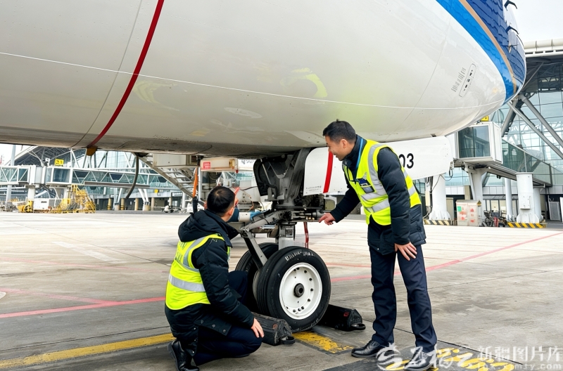 2月19日,南航新疆分公司飞行员韩江(左)与孙建行师徒细致开展航前检查。 黄志敏摄