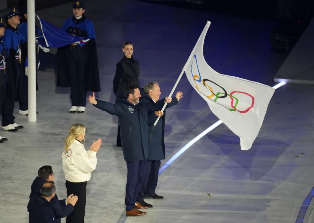 闭幕式尾声,奥林匹克会旗缓缓降下,由米兰市市长萨拉和科尔蒂纳丹佩佐市市长洛伦齐交给考文垂,再由考文垂交给2030年冬奥会举办地法国普罗旺斯-阿尔卑斯-蓝色海岸大区和奥弗涅-罗讷-阿尔卑斯大区代表。