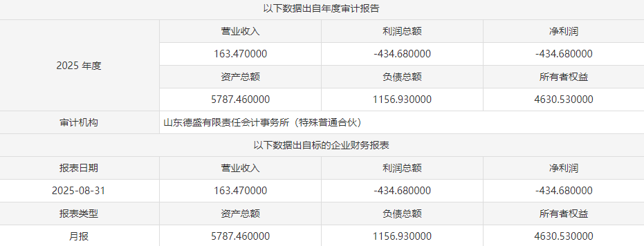 2025年度审计报告显示,交建城投控股(山东)有限公司营业收入为163.47万元,利润总额为-434.68万元,净利润为-434.68万元,资产总额为5787.46万元,负债总额为1156.93万元,所有者权益为4630.53万元。