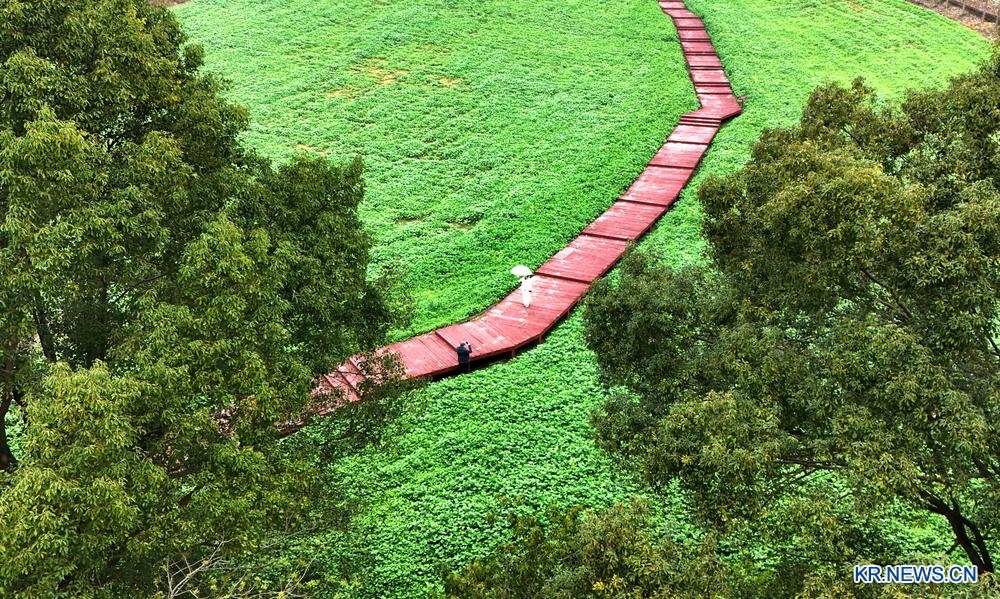 20일 광시(廣西)좡족자치구 라이빈(來賓)시의 한 라벤더 농장으로 나들이 나온 여행객을 드론으로 담았다.