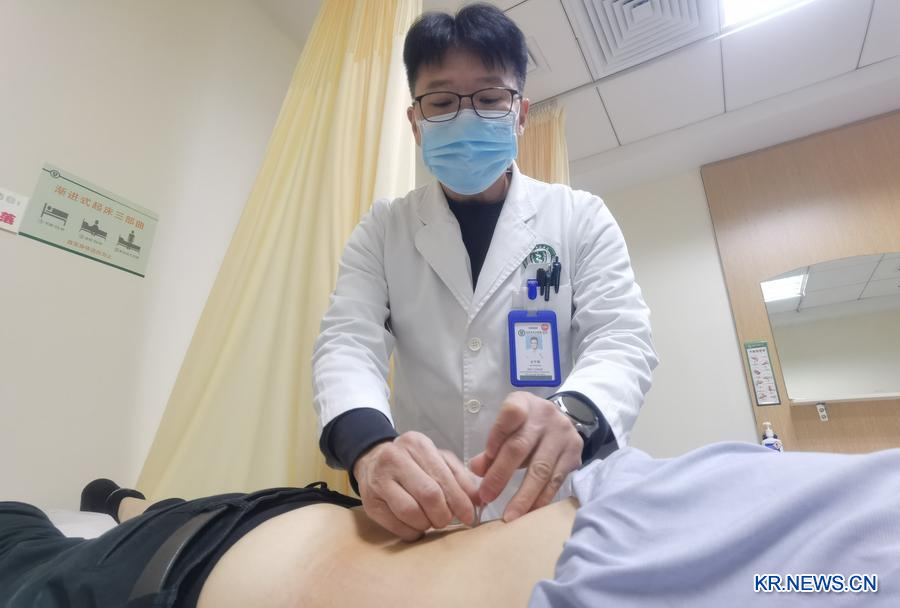 김형호 씨가 환자에게 침을 놓고 있다. (사진/신화통신)