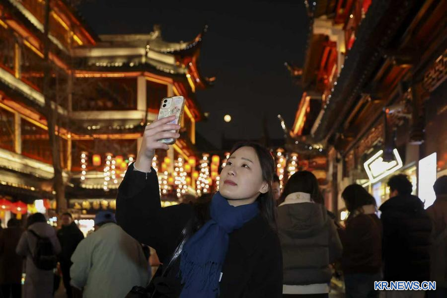 춘절(春節·음력설)을 맞아 한국인 유학생 최지하 씨가 상하이 예원(豫園)에서 등불 축제를 감상하고 있다. (사진/신화통신)