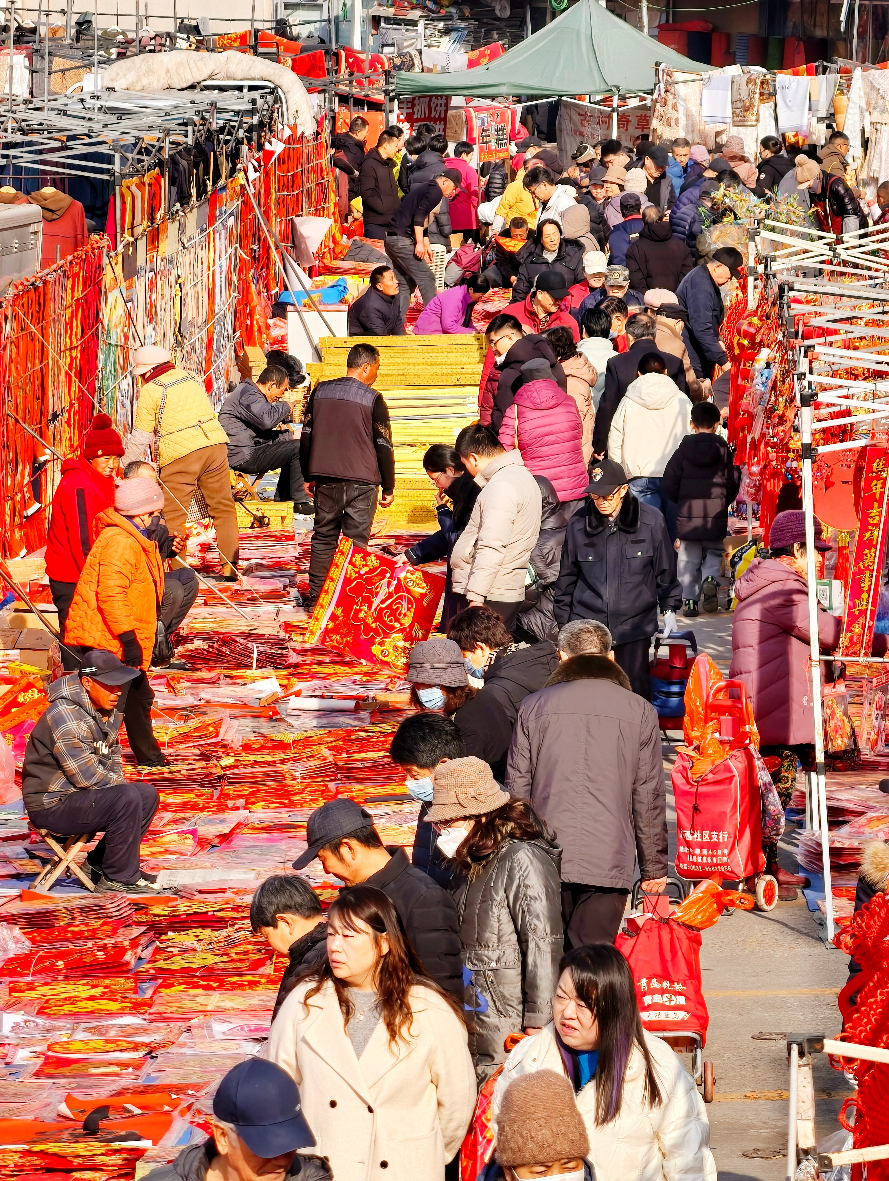 2. 市井烟火:捕捉年货大集上的人头攒动、寻常巷陌里的张灯结彩、家家户户贴福字挂春联的忙碌与喜悦。