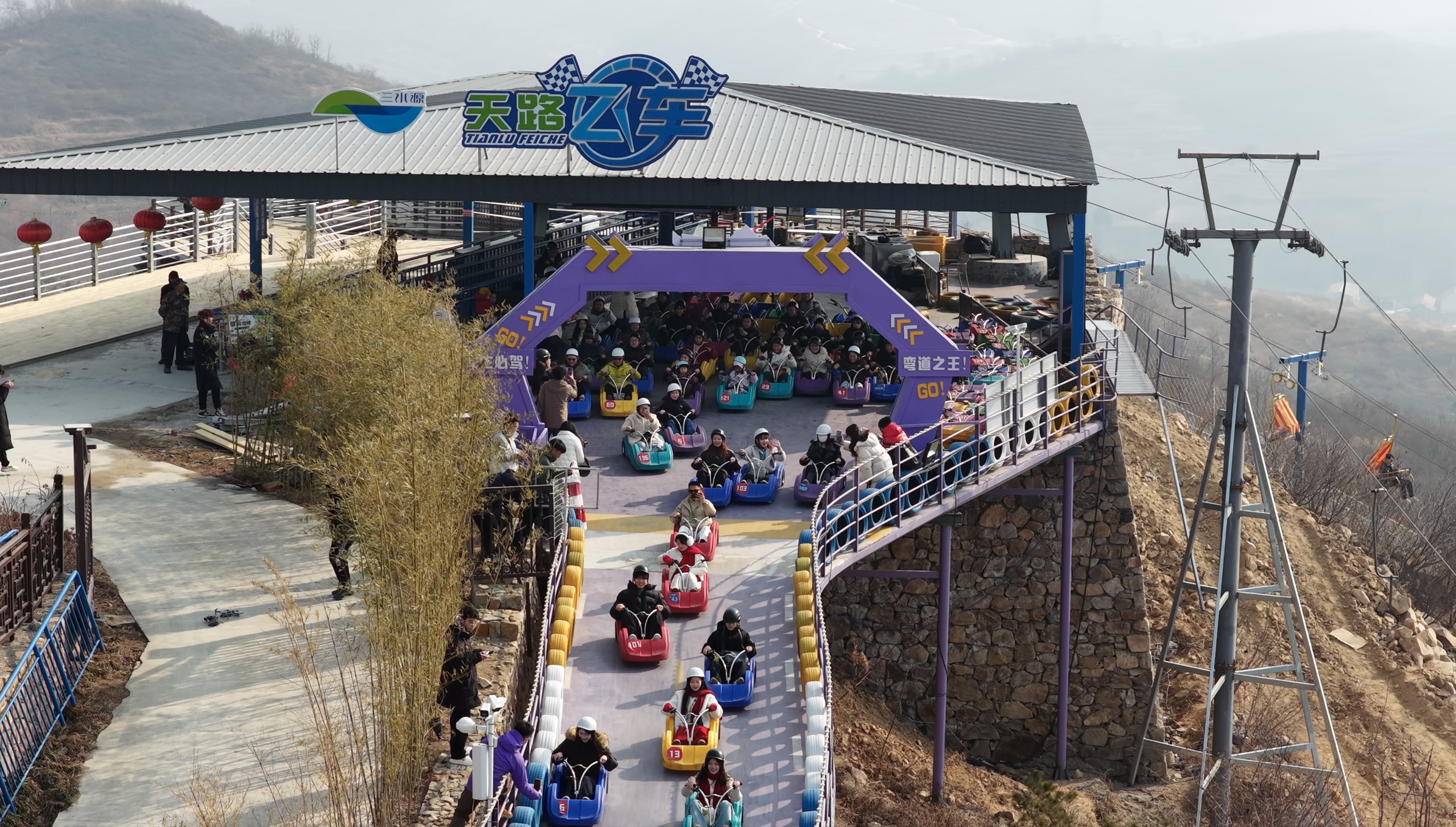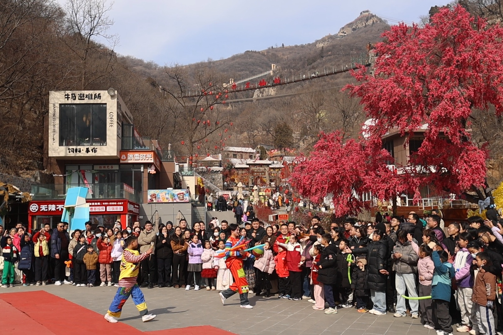 8090年味市集烟火气十足,传统小吃、非遗手作、怀旧游戏让游客流连忘返;天路飞车、时光魔毯、萌宠互动、冰雪游乐等项目,让孩子们玩得不亦乐乎……三水源生态旅游度假区推出新春免票福利,以山水田园与复古年味吸引了大量家庭游客。