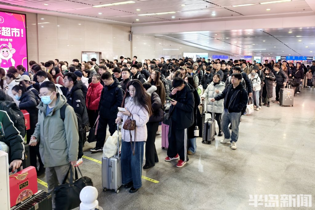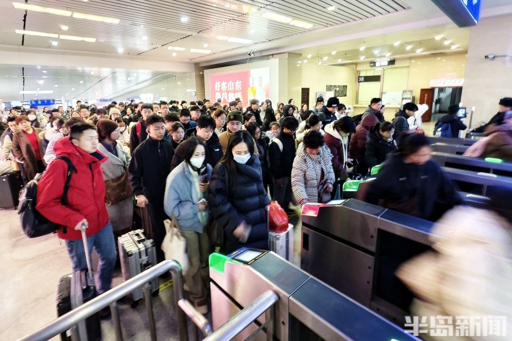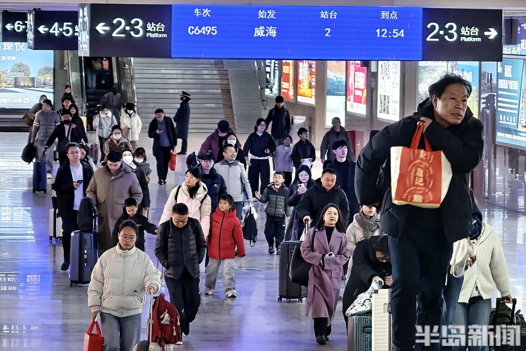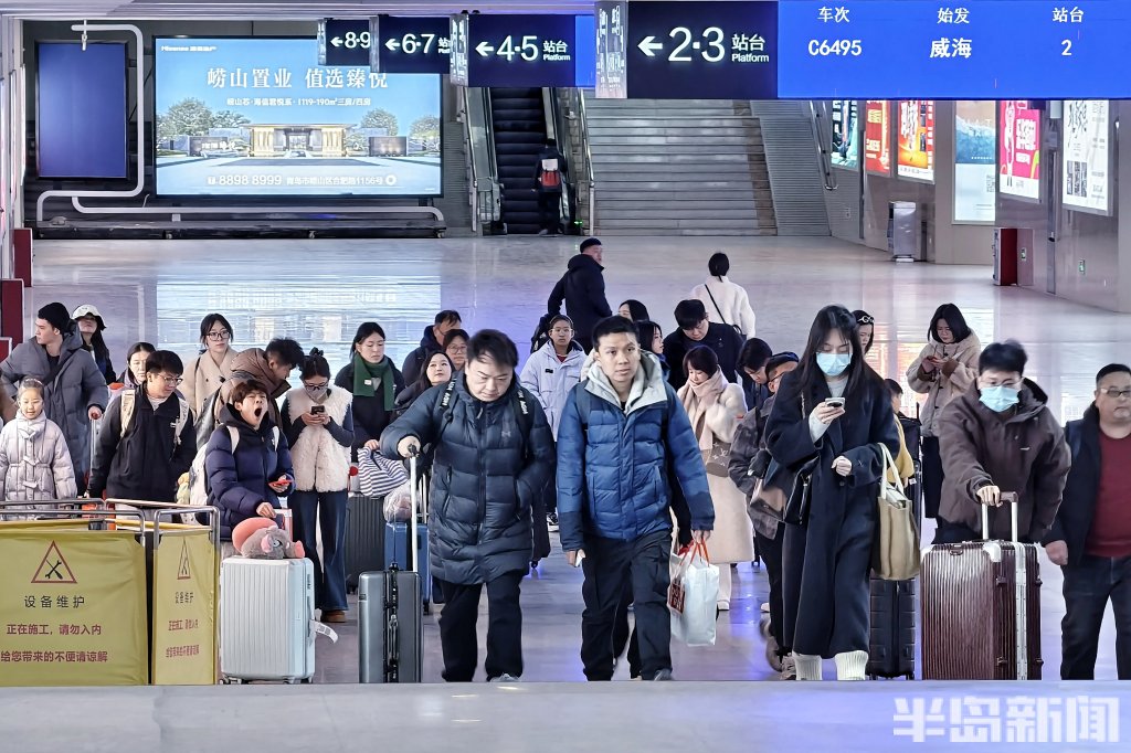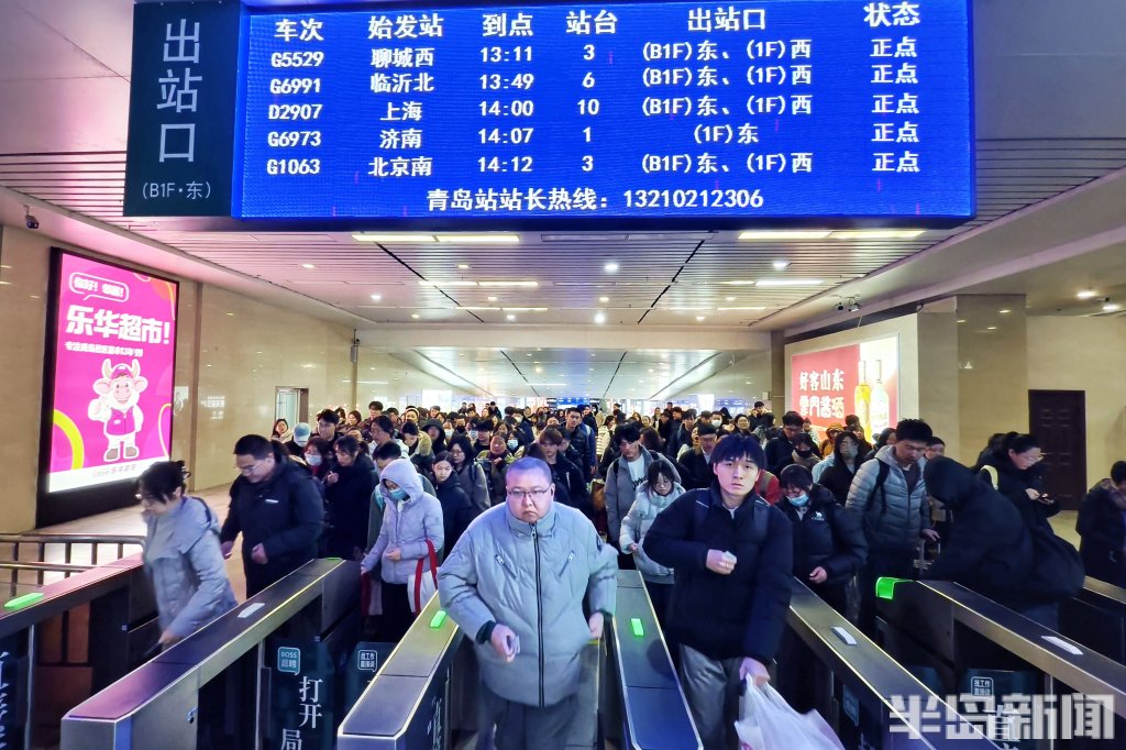 2月23日是农历正月初七,也是2026年春节假期的最后一天。下午时分,青岛火车站出站通道内人潮涌动。一列列从北京、上海、济南、威海等方向驶来的高铁陆续到站,闸机口不断吐出拎着大包小包的旅客。他们中有背着双肩包的年轻学子,有推着行李箱、手牵孩子的年轻父母,还有提着家乡特产礼盒的中老年人。新的一年,从这场浩浩荡荡的返程潮中,悄然开启。(半岛全媒体记者吴璟)