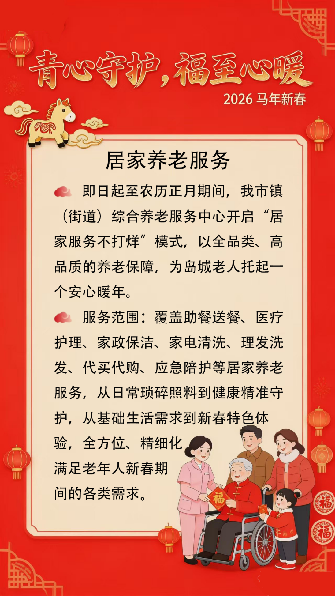 服务启新,温情相伴!为了让每一位长者都能安享晚年,让每一个家庭都能安心生活,青岛市民政局统筹优质养老服务资源,启动“青心守护,福至心暖”居家养老和短期托养服务,以专业之力筑牢照护防线,用暖心之举化解家庭烦忧。