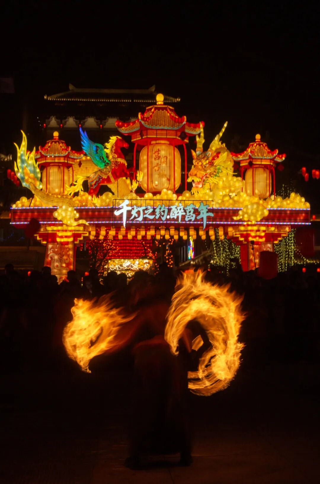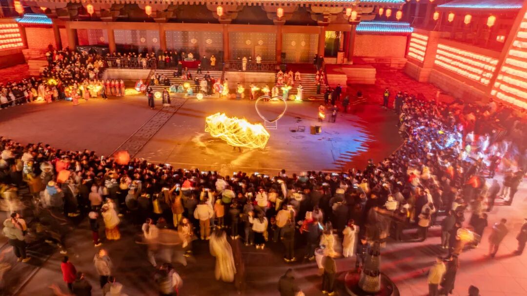 夜幕降临,华灯齐放,十万盏花灯勾勒古城风骨,飞檐斗拱披金挂红,青石板路流光溢彩;街巷之内,人潮涌动,欢声笑语与鼓乐齐鸣,国潮演绎、仙侠市集、篝火打歌、祈福放飞、非遗火秀、花灯巡游轮番上演。目之所及,皆是灯火辉煌、游人如织、古韵新风的新春盛景。