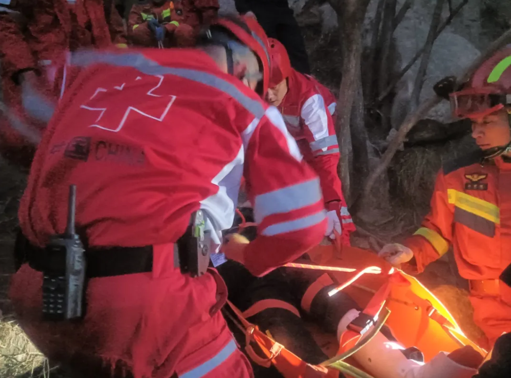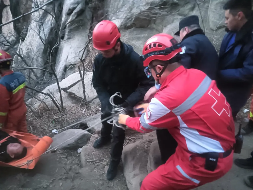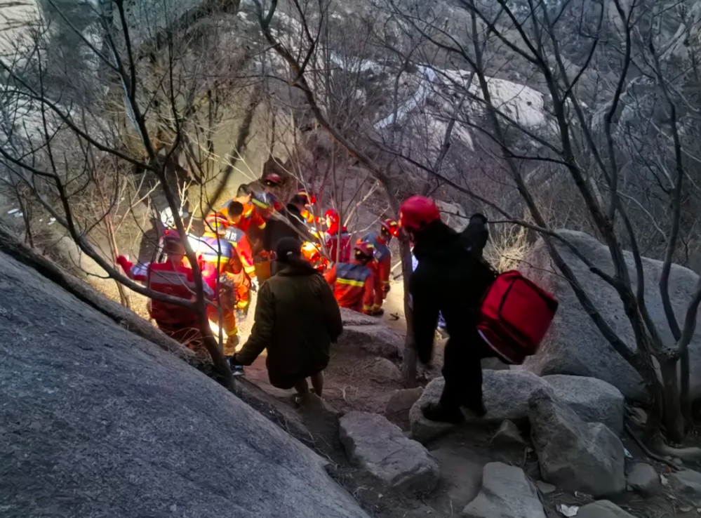 2月22日,正月初六,当天下午4时28分,平度市红十字搜救队接119指挥中心通报,大泽山风景区山神石附近有人受伤,需要协助救援。平度市红十字搜救队快速启动应急响应机制,携带医疗装备、绳索、担架等山地救援装备向事发区域集结。