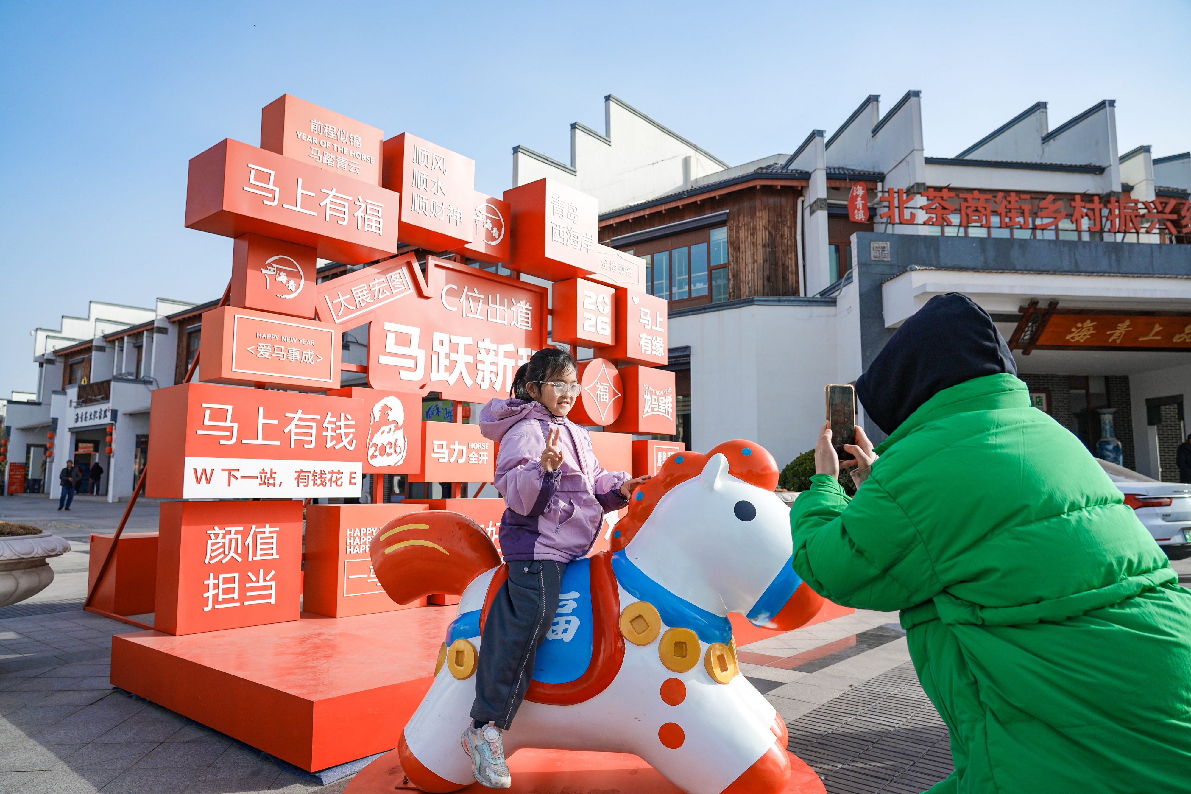 与此同时,“海青上品 茶乡有礼”新春海洋大集也人气爆棚。特色摊位琳琅满目,香气扑鼻,让人目不暇接。一旁的游客中心里,灯笼手工DIY活动温馨展开,孩子们在文明实践志愿者的指导下,亲手制作福马花灯,脸上笑开了花。此外,“青青草”义诊大集、“马跃新程”网红打卡墙前也聚集了不少前来咨询、拍照打卡的群众,为活动增添了满满温情。