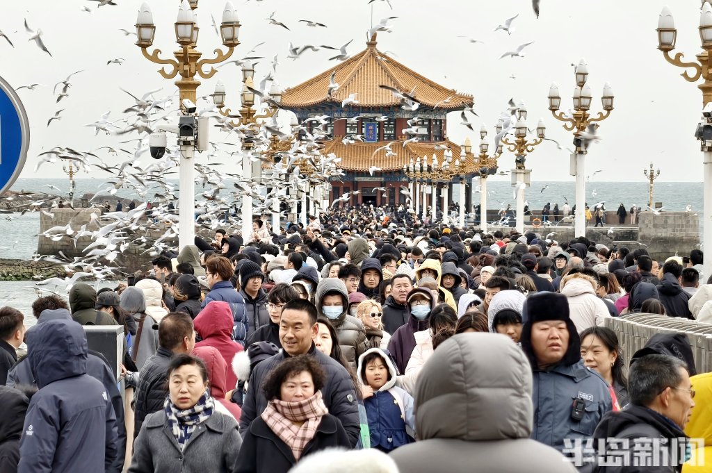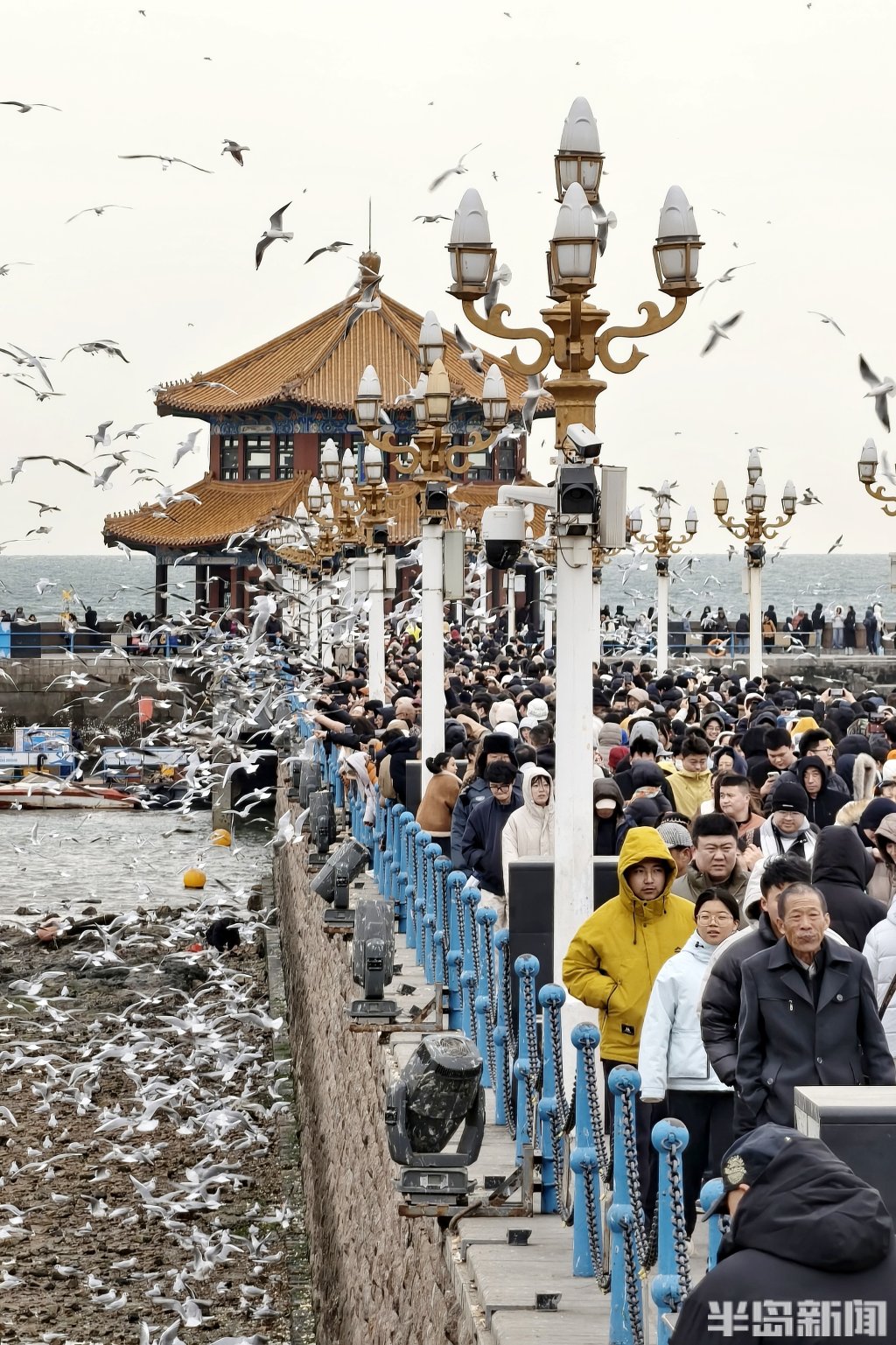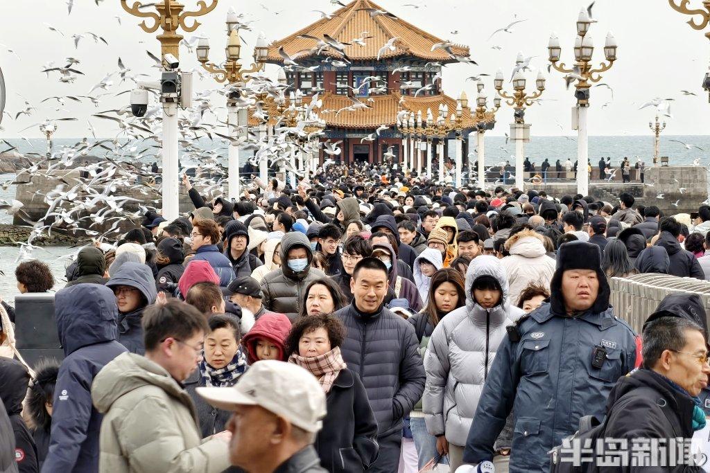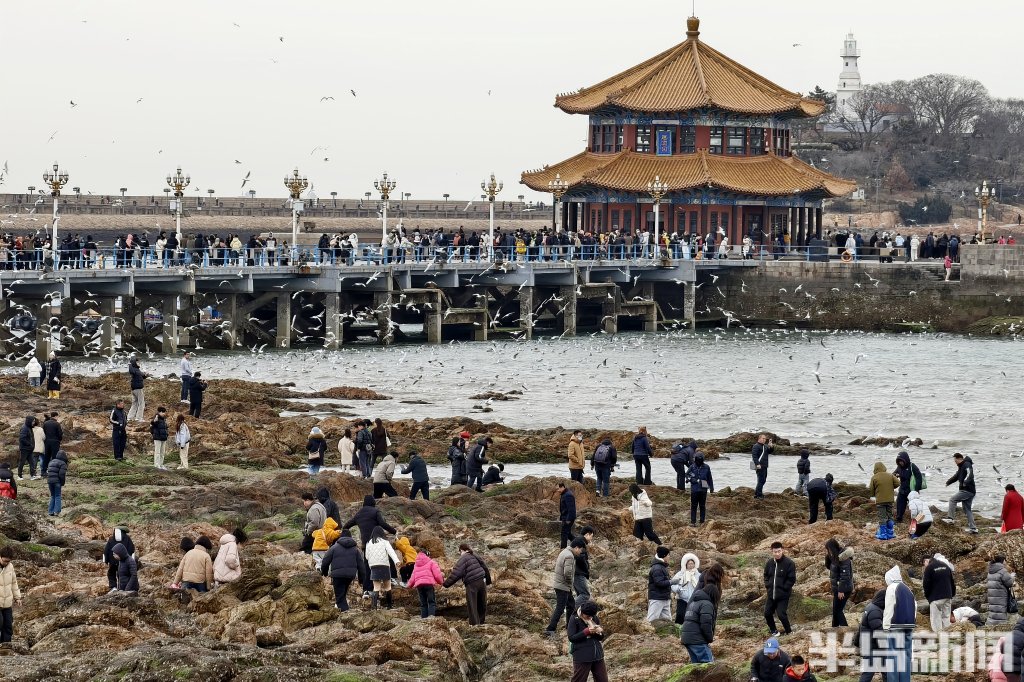 2月23日,农历正月初七,春节假期最后一天,尽管受弱冷空气影响,海风裹挟着凉意阵阵袭来,但青岛栈桥景区的人气却丝毫未减。大量抓住假期“余额”的市民与游客拥向海边,用一场与海鸥的约会,为这个马年春节画上圆满句号。