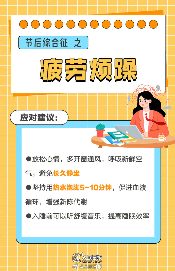 超长假期后,如何应对节后综合征?人民日报 2026-02-23 16:52:52今年是春节假期最后一天,你踏上返程的路了吗?超长9天假期过后,该如何应对身心各项挑战?9图带你应对节后综合征↓↓ (人民日报)责任编辑:周静
