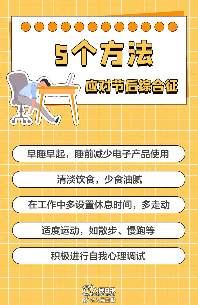 今年是春节假期最后一天,你踏上返程的路了吗?超长9天假期过后,该如何应对身心各项挑战?9图带你应对节后综合征↓↓(人民日报)