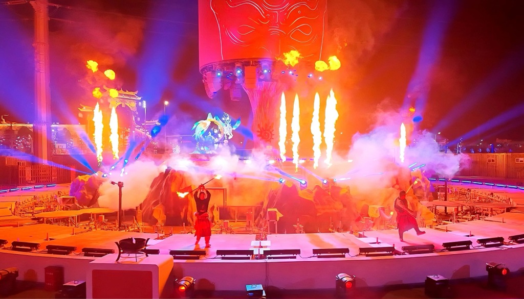 走进街区,随处可见的是一张张笑脸和一个个忙碌打卡的身影。游客们手持“银票”,与NPC斗智斗勇,在集章、打卡、PK中完成一场跨越山海的寻宝之旅;在飞花令、投壶、剪纸等马年主题游戏中流连忘返,用赢取的“银票”在晚间拍卖会上争当“山海首富”。开园仪式的盛大山海巡游拉开一天的序幕,《龙王招婿》的沉浸式演艺引得笑声不断,发财树下的傩戏与非遗技艺展演则让游客在惊叹中感受传统技艺的精湛。同时还特别推出了央视春晚同款的机器人巡游表演活动,为广大游客朋友们带来了一个“科技+文化”融合的中国年。日均近百余场演艺轮番登场,步步有景、处处有戏,让整个街区化作一座没有边界的沉浸式剧场。