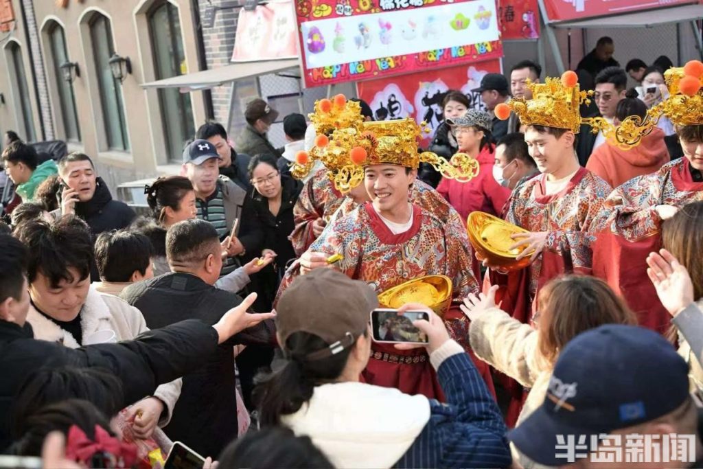 从传统神话角色到大鲍岛南区每日多场上演的“大圣巡游”,到潮流IP“蛋仔拜年”“赛博新源·新春送福”穿梭于即墨路街巷,传统与新潮在里院之间完成跨越时空的对话。2月21日(正月初五)“迎财神”主题日,广兴里还举办了“骏鸣新春”歌会,晚间李村路广场“蹦鲍迪”与电子孔明灯放飞点燃青春活力,让百年戏楼唱响时代新声。2月22日(正月初六)“迎财纳福·财神赐福日”全天巡游;2月23日(正月初七)“策马当先布马舞”展现非遗魅力。