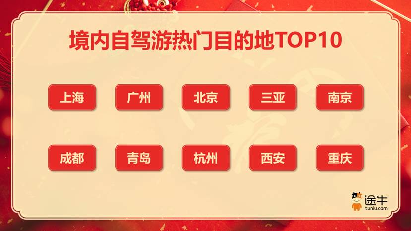 《报告》数据显示,春节旅游市场途牛用户境内游热门目的地中,上海、北京、广州、三亚、南京、成都、重庆、西安、厦门、哈尔滨成为游客更为热门的选择,出游热度位居“春节境内游热门目的地榜单”前列。