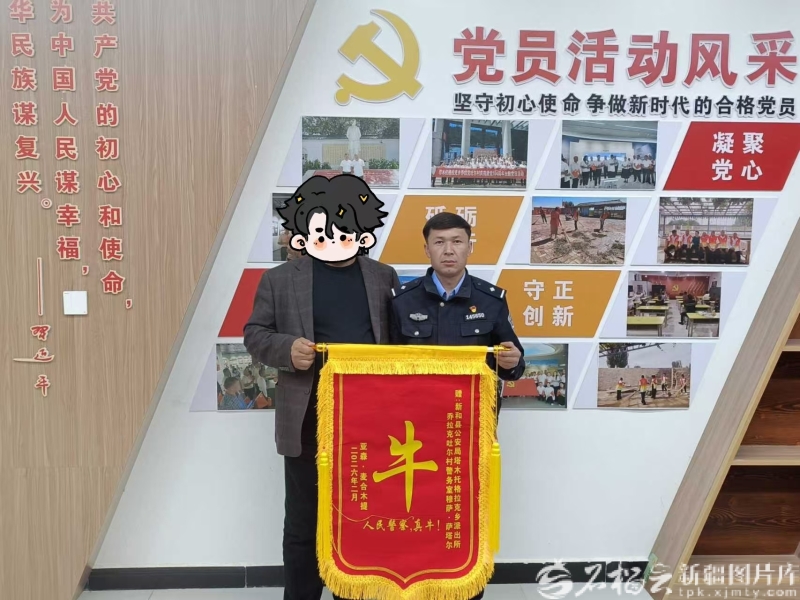 除夕当天,新和县公安局塔木托格拉克乡派出所乔拉克吐尔村警务室民警穆萨·萨塔尔,收到一面别致的锦旗——上面写有一个大大的“牛”字。