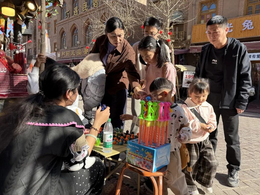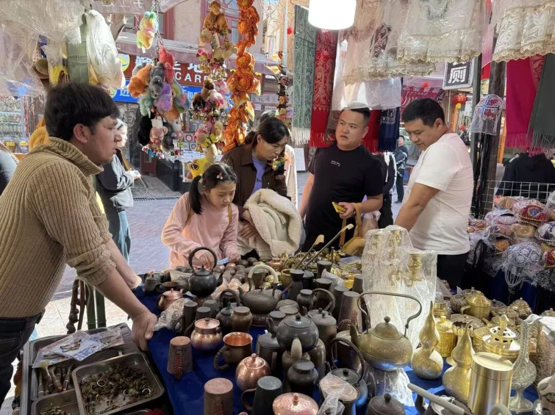 喀什古城游客纷纷被摊贩前物品吸引。喀什地区融媒体中心 记者任鹏程 摄
