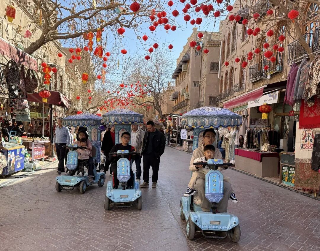 喀什古城游客在体验代步车。喀什地区融媒体中心 记者任鹏程 摄