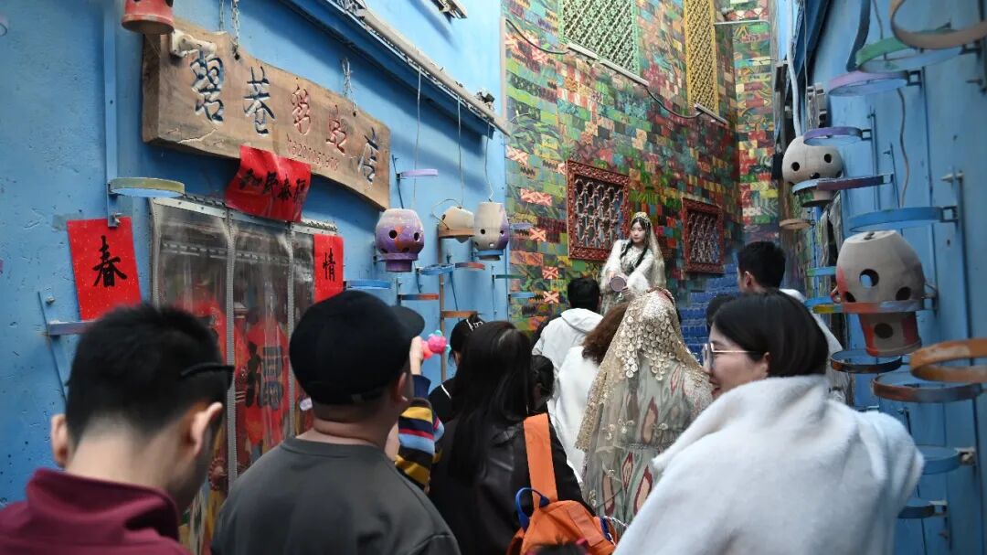 作为喀什古城的标志性打卡点,这条色彩斑斓的小巷总是人头攒动,游客们自觉有序排队,只为捕捉“一步一景皆画卷”的独特魅力。大家时而驻足欣赏巷弄美景,时而与身旁的游客分享拍照心得,洋溢着热闹祥和的气息。