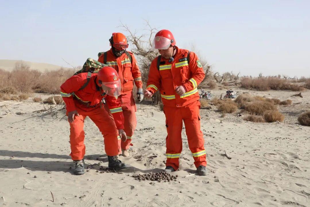 护林员检查野生动物粪便,确定动物位置。喀什地区融媒体中心 实习记者 尉旭升 摄