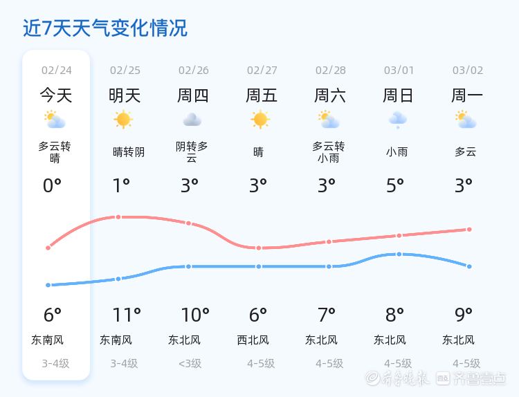预计明天(2月25日),威海天气将由晴转阴,气温略有上升,最低气温1℃,最高气温11℃,东南风3-4级。与今日相比,明天的天气变化不大,但气温有所回升,市民出行时可适当增减衣物。