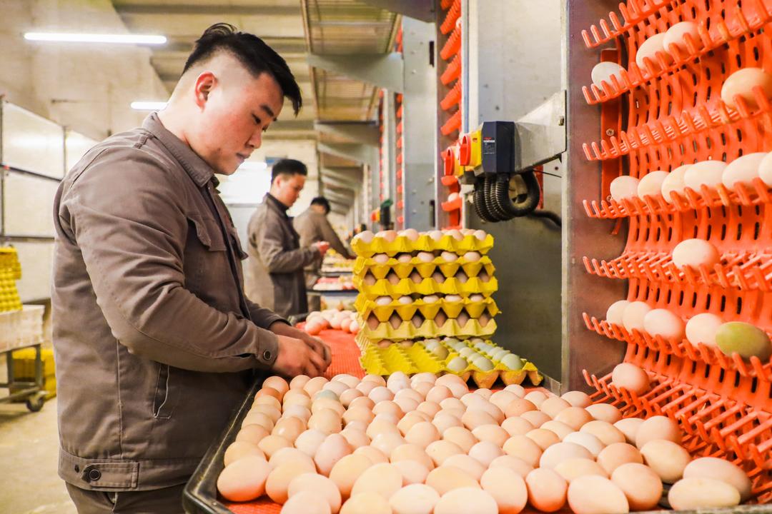这枚鸡蛋的旅程,始于15公里外的全省首家全自动化福利养殖舍。此刻,在上万只羽色光亮、活动自如的孙枝鸡中间,饲养员只需指尖轻触屏幕,就能管理整个鸡舍的环境。从智能孵化到高效分拣,鸡蛋生产的每一步,都充满了科技感。