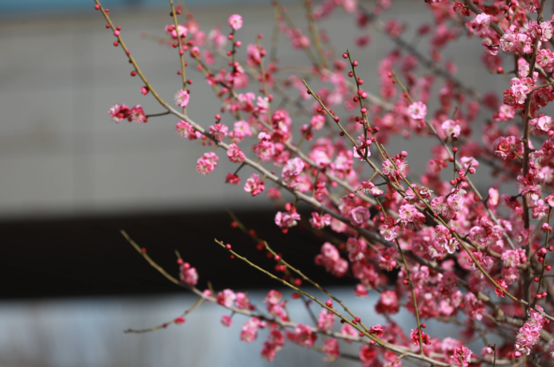 据了解,随着气温回升,市民中心的梅花将进入最佳观赏期,预计可持续至3月上旬。
